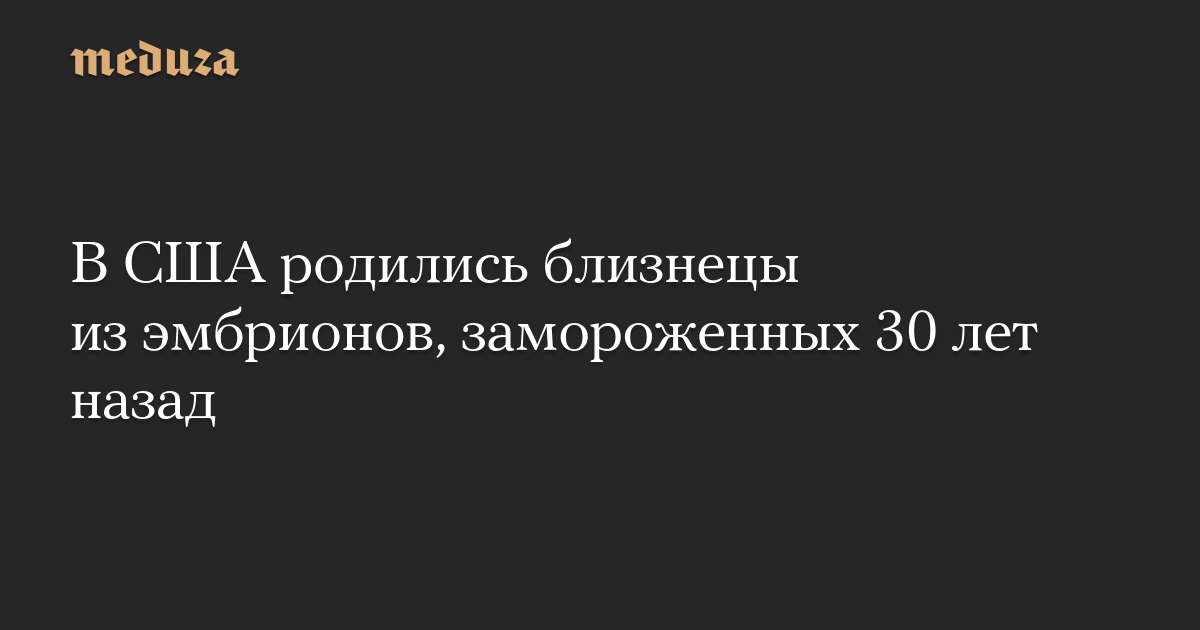 В США родились близнецы из эмбрионов, замороженных 30 лет назад