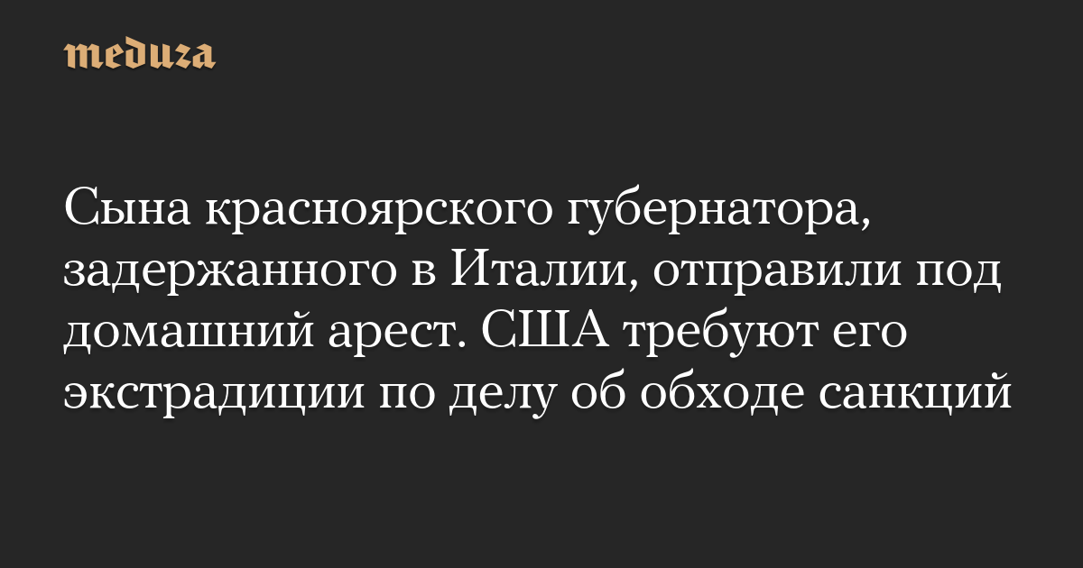 Сына красноярского губернатора, задержанного в Италии, отправили под домашний арест. США требуют его экстрадиции по делу об обходе санкций
