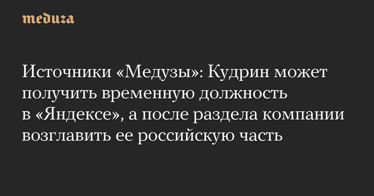 «Скорее всего, в новой российской структуре останется миноритарная доля материнской голландской компании. По одной из версий, он [Кудрин] станет председателем совета директоров новой российской структуры и членом совета директоров голландской компании, которая сейчас головная, а после разделения будет сторонней», — рассказал источник «Медузы», знакомый с планами реструктуризации «Яндекса».