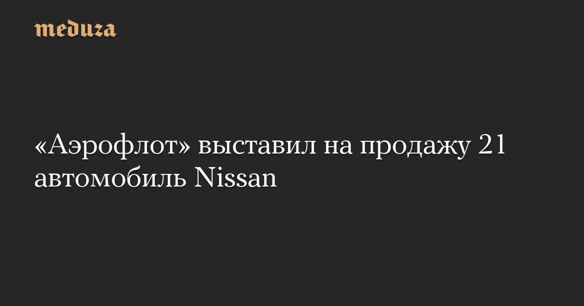 Авиакомпания «Аэрофлот» проведет аукцион по продаже 21 автомобиля Nissan, находящегося в ее собственности, сообщается на сайте перевозчика.