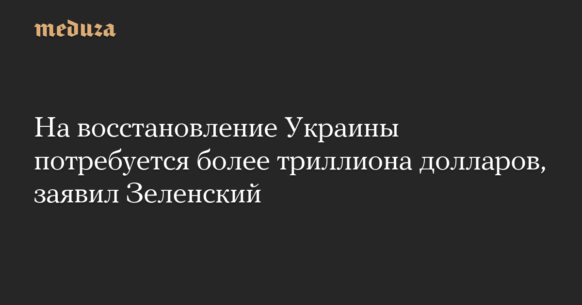 На восстановление Украины потребуется более триллиона долларов, заявил Зеленский