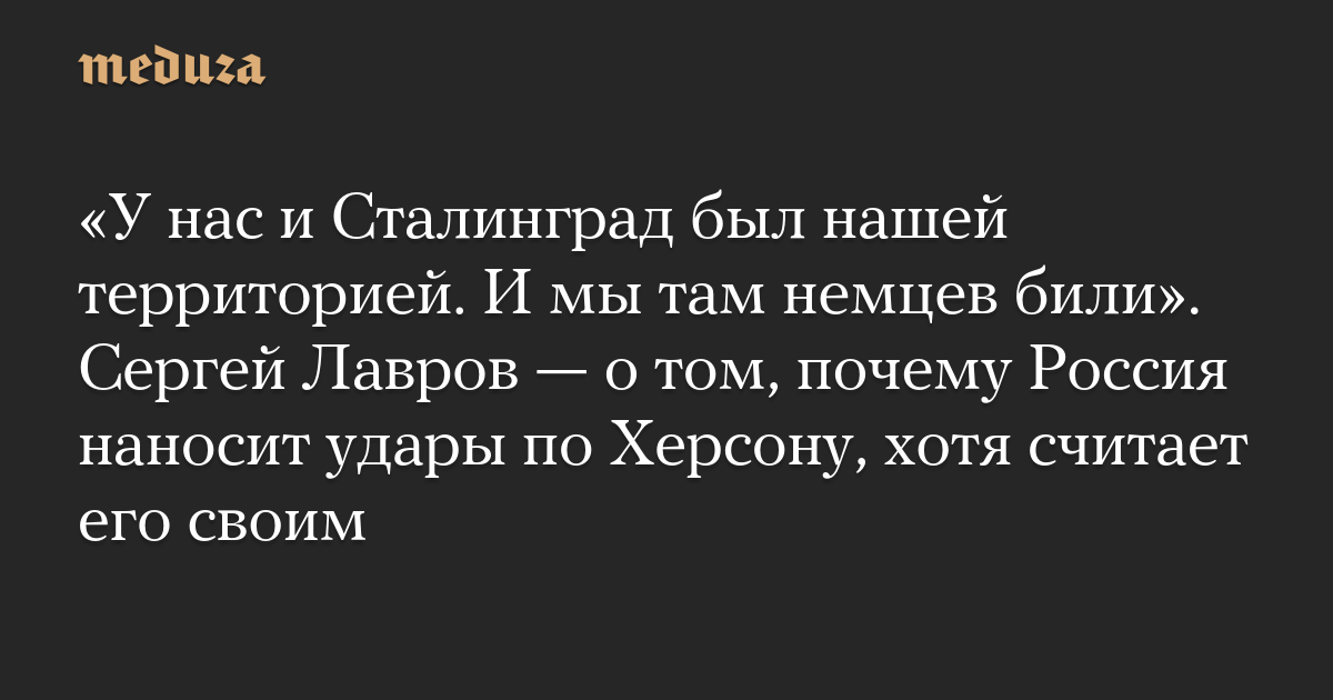 «У нас и Сталинград был нашей территорией. И мы там немцев били». Сергей Лавров — о том, почему Россия наносит удары по Херсону, хотя считает его своим