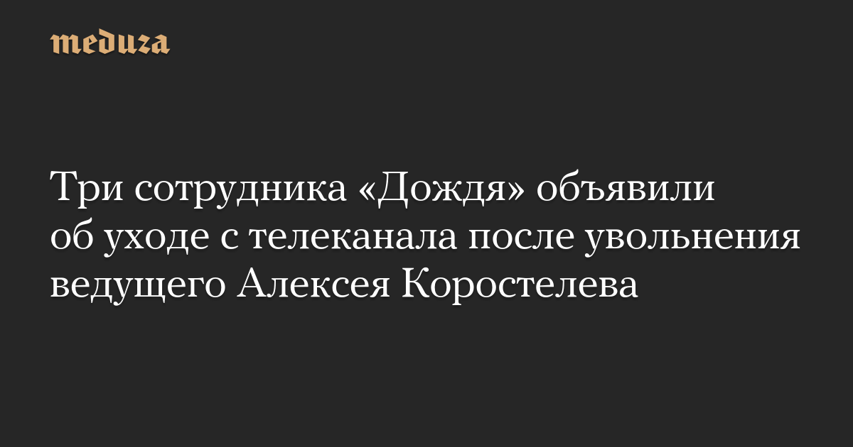 Три сотрудника «Дождя» объявили об уходе с телеканала после увольнения ведущего Алексея Коростелева
