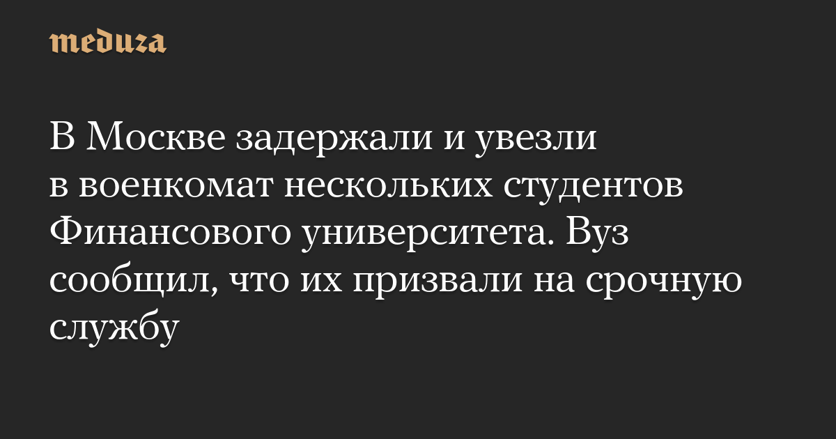 В Москве задержали и увезли в военкомат нескольких студентов Финансового университета. Вуз сообщил, что их призвали на срочную службу