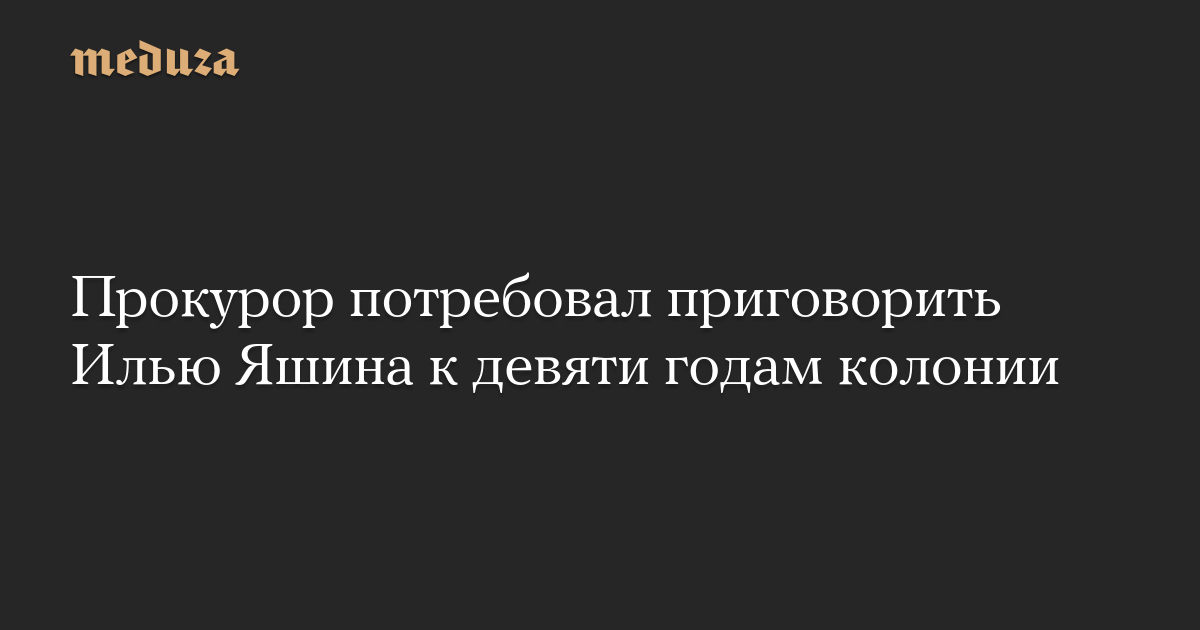 Государственный обвинитель потребовал приговорить политика Илью Яшина к девяти годам колонии по делу о «фейках» про действия российской армии. Как сообщает «Медиазона», прокурор также потребовал запретить Яшину пользоваться интернетом в течение четырех лет после отбытия срока.