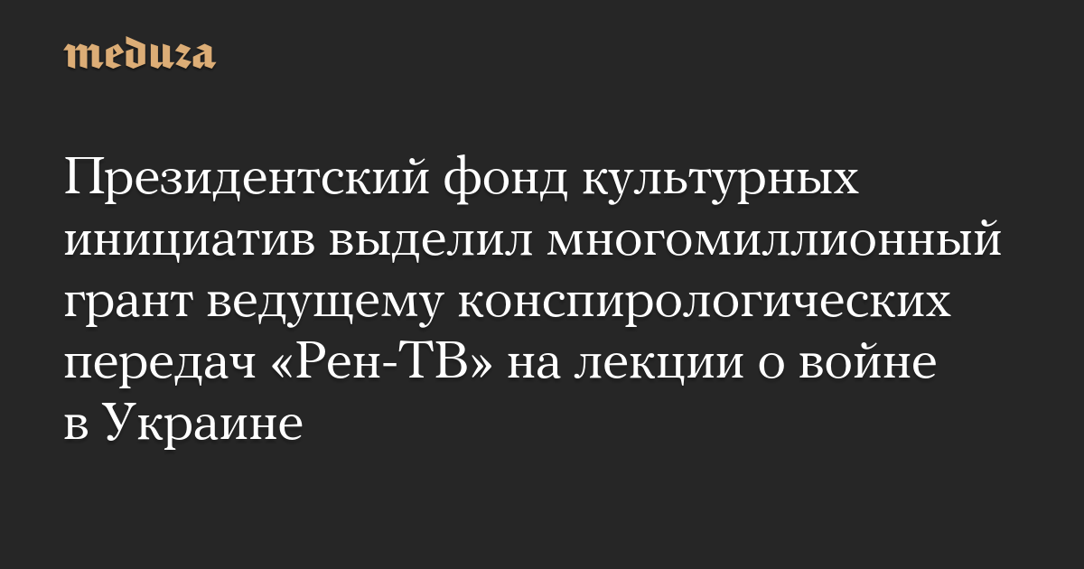 Президентский фонд культурных инициатив выделил многомиллионный грант ведущему конспирологических передач «Рен-ТВ» на лекции о войне в Украине