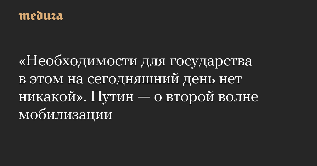 «Необходимости для государства в этом на сегодняшний день нет никакой». Путин — о второй волне мобилизации