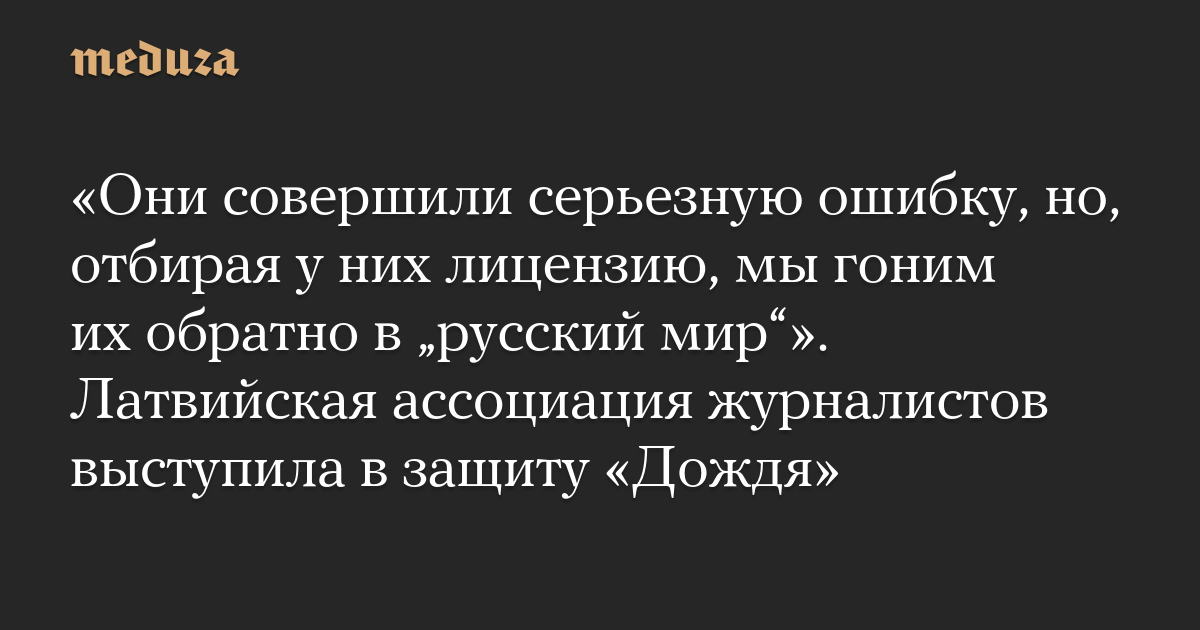 «Они совершили серьезную ошибку, но, отбирая у них лицензию, мы гоним их обратно в „русский мир“». Латвийская ассоциация журналистов выступила в защиту «Дождя»
