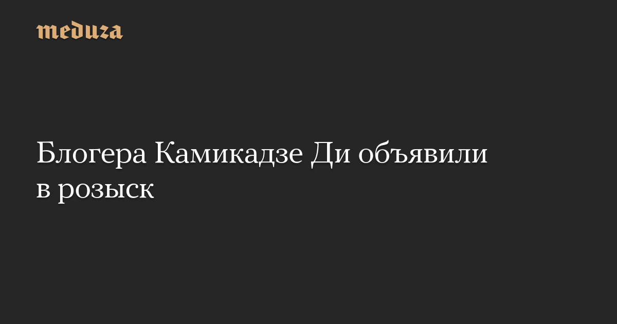 МВД РФ объявило в федеральный розыск блогера Дмитрия Иванова (Камикадзе Ди), ведущего ютьюб-канала Kamikadzedead (1,7 миллиона подписчиков). Первой на это внимание обратила «Медиазона».