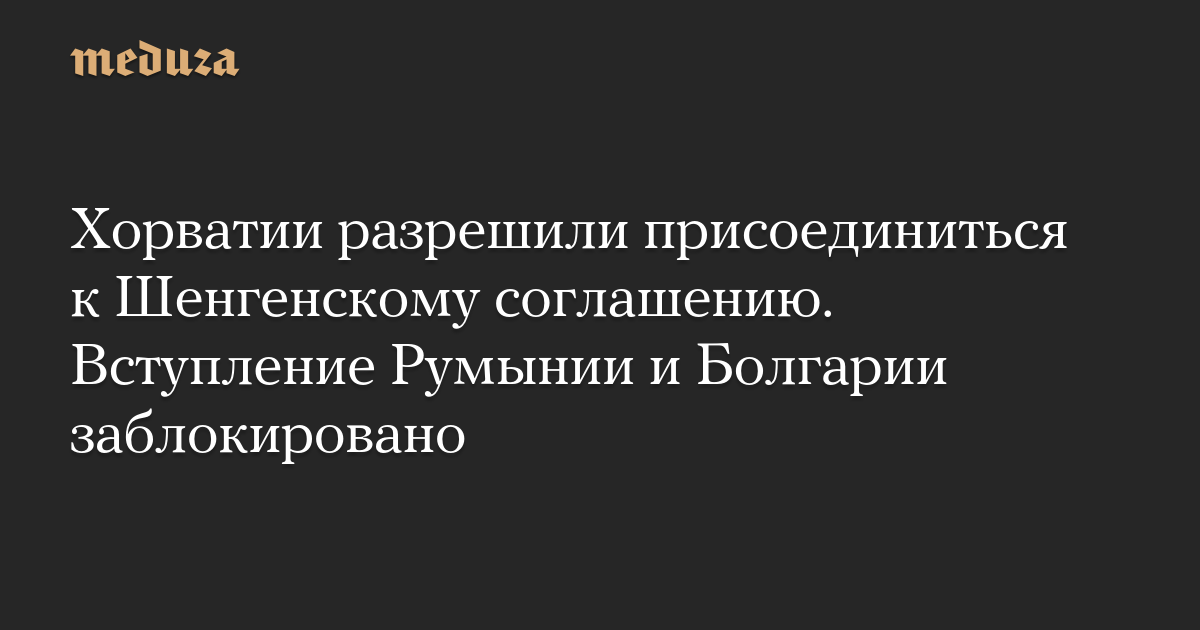 Хорватии разрешили присоединиться к Шенгенскому соглашению. Вступление Румынии и Болгарии заблокировано
