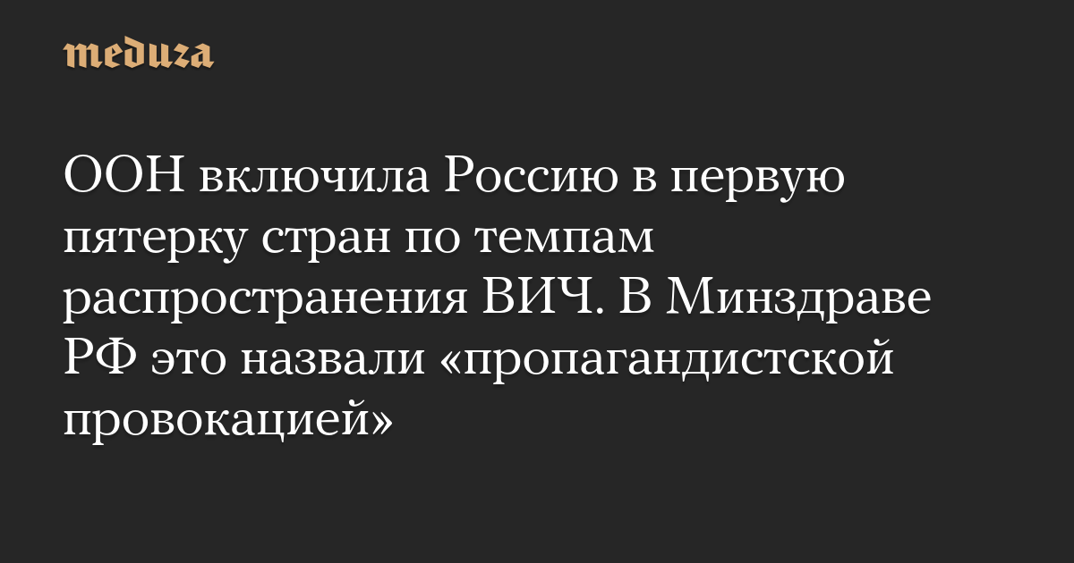 ООН включила Россию в первую пятерку стран по темпам распространения ВИЧ. В Минздраве РФ это назвали «пропагандистской провокацией»