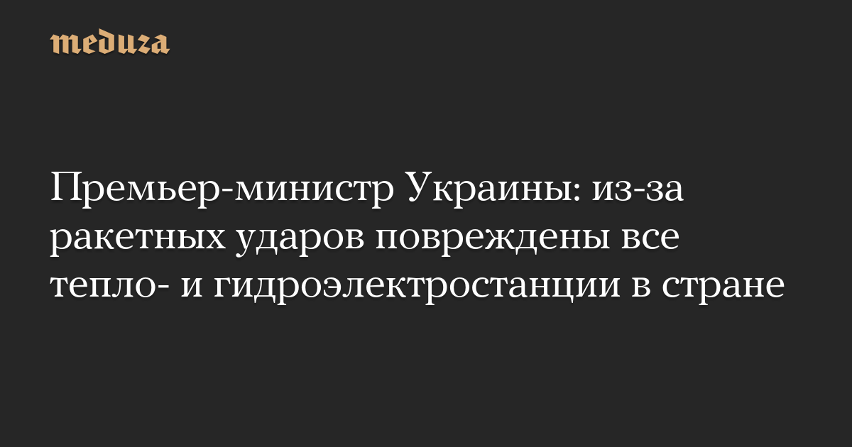 Премьер-министр Украины: из-за ракетных ударов повреждены все тепло- и гидроэлектростанции в стране