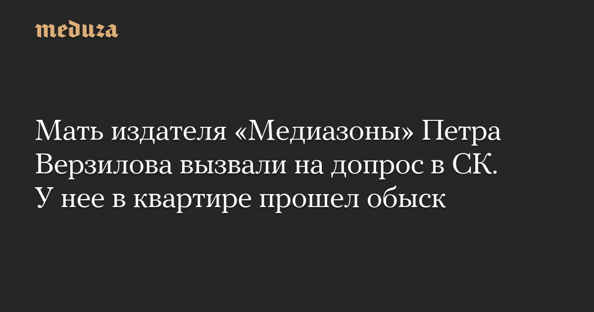 Мать издателя «Медиазоны» Петра Верзилова вызвали на допрос в СК. У нее в квартире прошел обыск