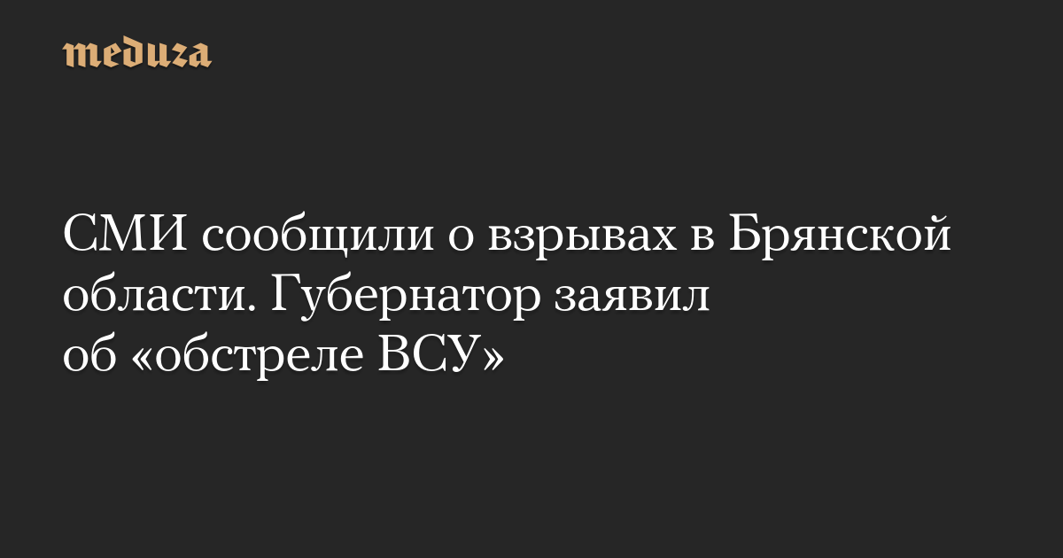 СМИ сообщили о взрывах в Брянской области. Губернатор заявил об «обстреле ВСУ»