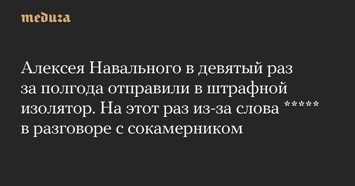 Алексея Навального в девятый раз за полгода отправили в штрафной изолятор. На этот раз из-за слова ***** в разговоре с сокамерником