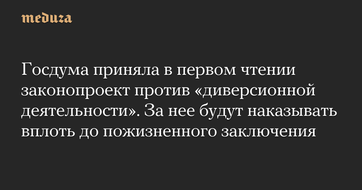 Госдума приняла в первом чтении законопроект против «диверсионной деятельности». За нее будут наказывать вплоть до пожизненного заключения