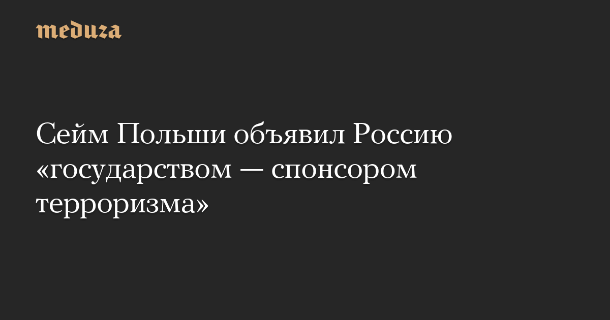 Сейм Польши объявил Россию «государством — спонсором терроризма»