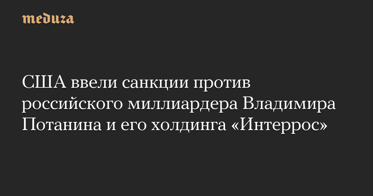 США ввели санкции против российского миллиардера Владимира Потанина и его холдинга «Интеррос»