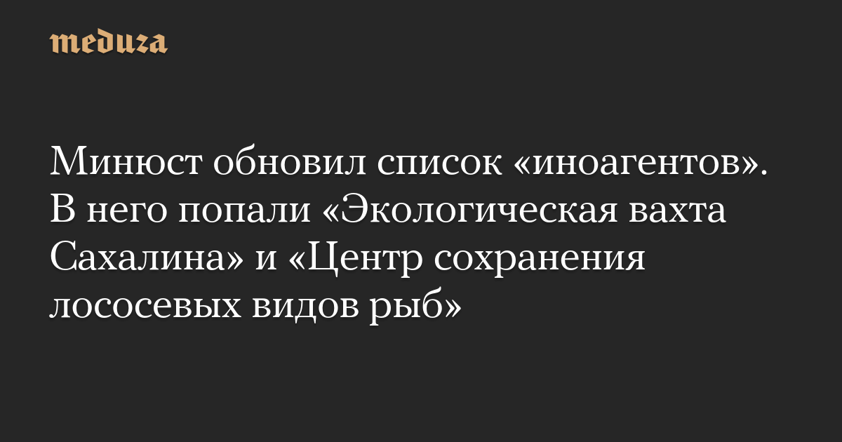 Минюст обновил список «иноагентов». В него попали «Экологическая вахта Сахалина» и «Центр сохранения лососевых видов рыб»