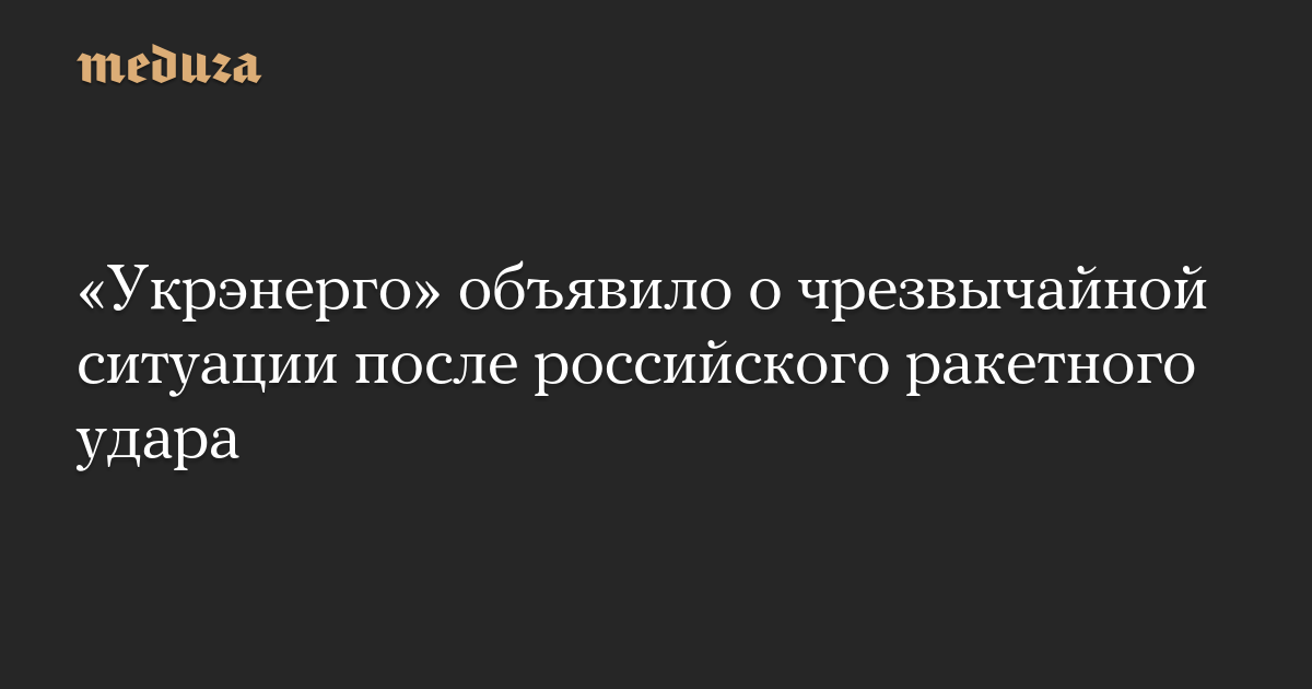 «Укрэнерго» объявило о чрезвычайной ситуации после российского ракетного удара