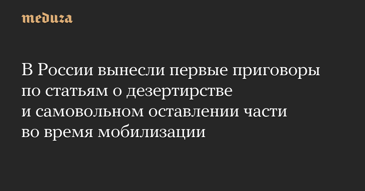 Российские суды начали выносить приговоры по статьям о дезертирстве и самовольном оставлении части в период мобилизации и ведения боевых действий. Это обнаружила «Медиазона», изучив сайты гарнизонных военных судов.
