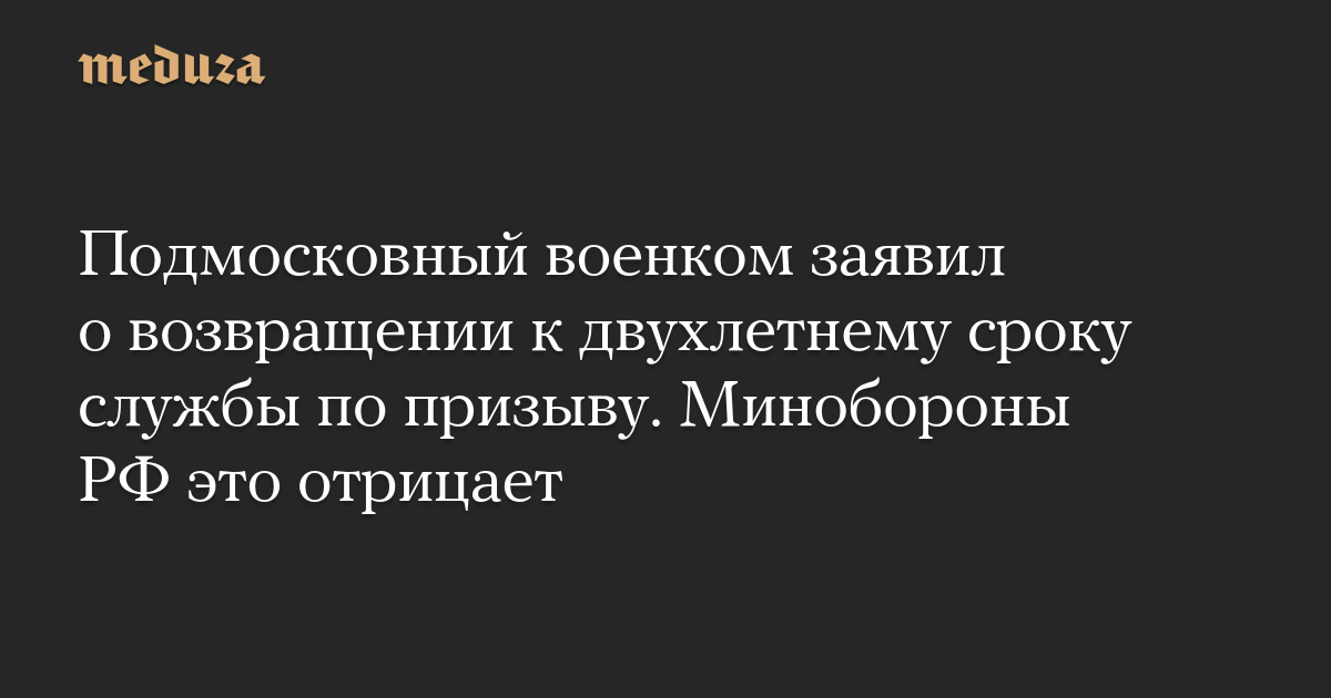 «Граждане, призванные весной, будут служить полтора года, а призванные осенью 2023 года будут служить уже два года», — сказал Фотин в эфире «Дмитров ТВ», ссылаясь на «официальную информацию» от военного комиссара Московской области.