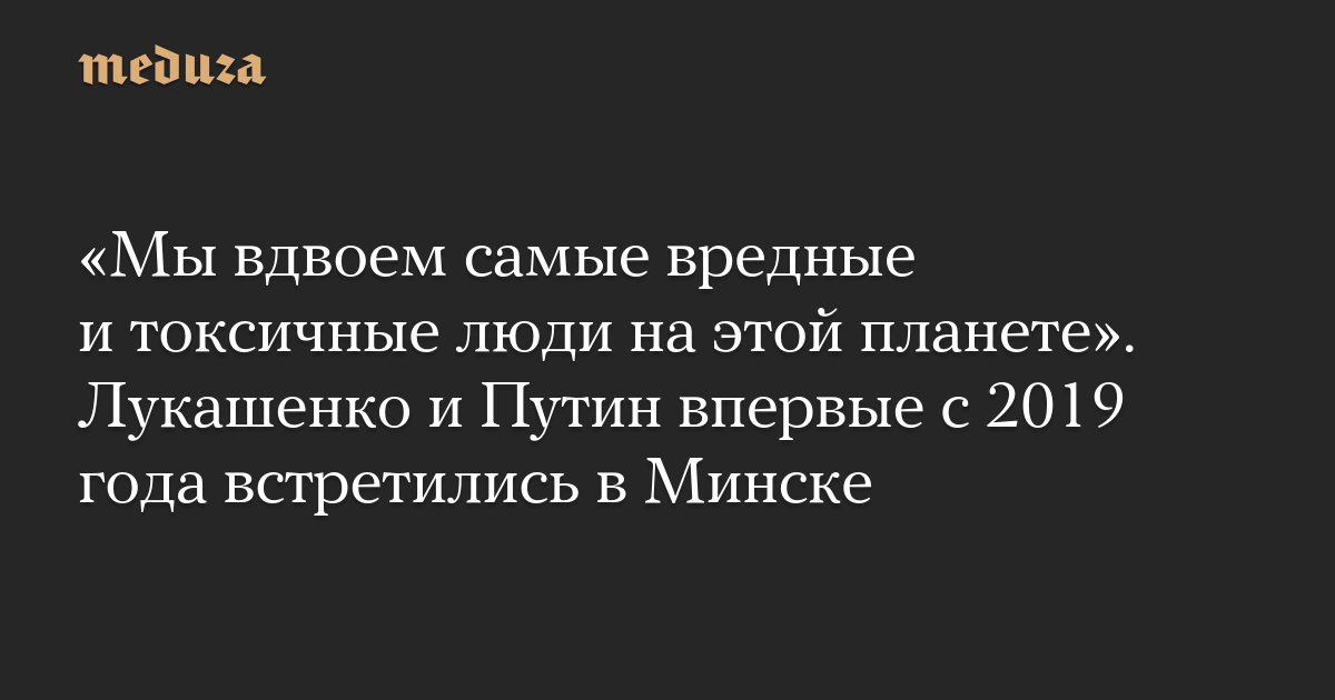 «Мы вдвоем самые вредные и токсичные люди на этой планете». Лукашенко и Путин впервые с 2019 года встретились в Минске