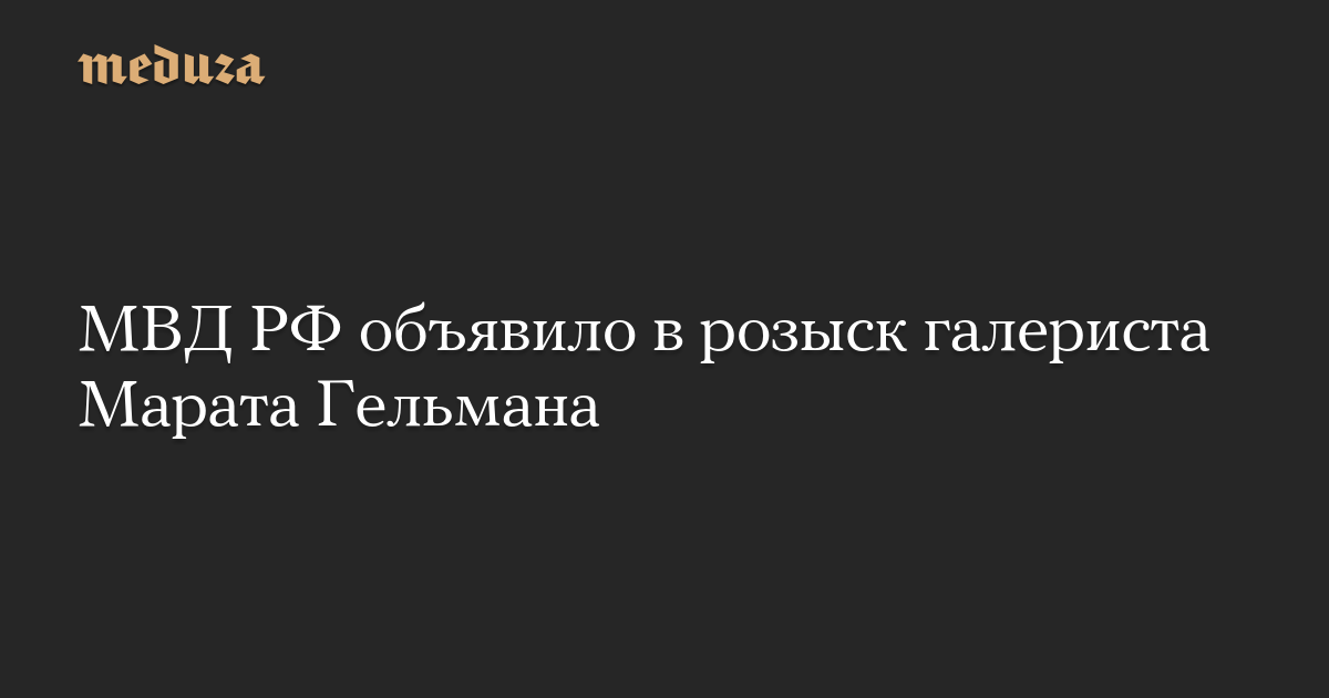 МВД России объявило галериста Марата Гельмана в федеральный розыск по уголовной статье. Информация об этом содержится в базе ведомства, обратила внимание «Медиазона».