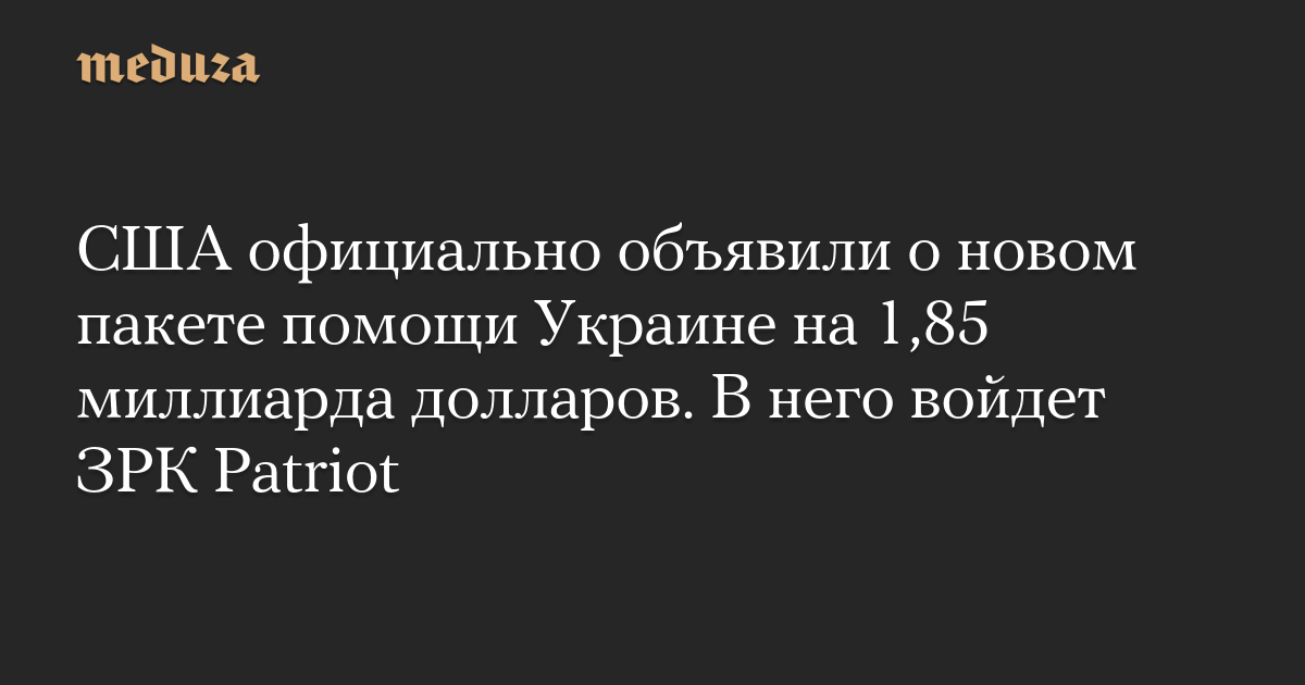 США официально объявили о новом пакете помощи Украине на 1,85 миллиарда долларов. В него войдут поставки зенитных ракет Patriot