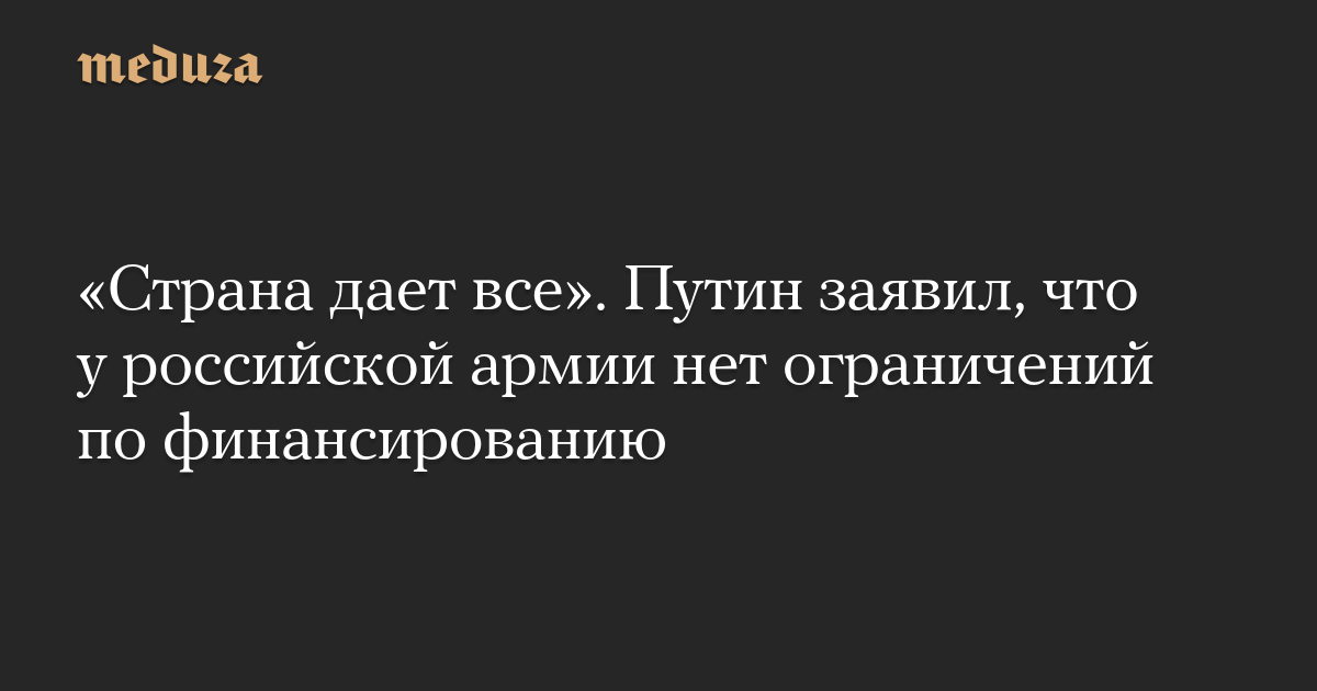 «Страна дает все». Путин заявил, что у российской армии нет ограничений по финансированию
