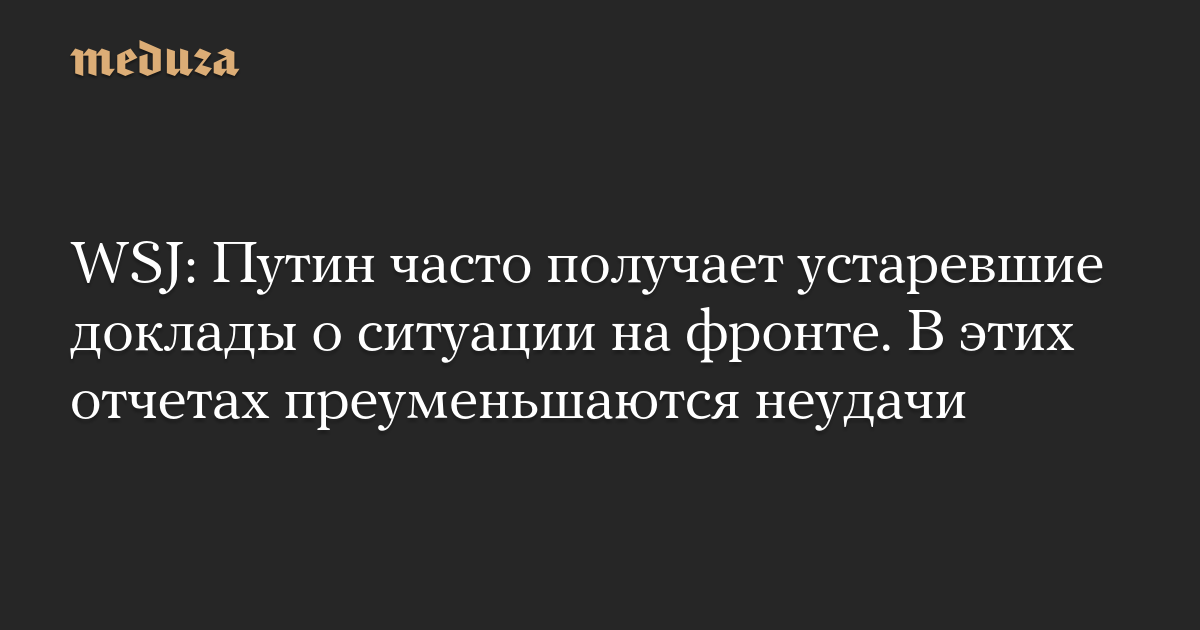 WSJ: Путин часто получает устаревшие доклады о ситуации на фронте. В этих отчетах преуменьшаются неудачи