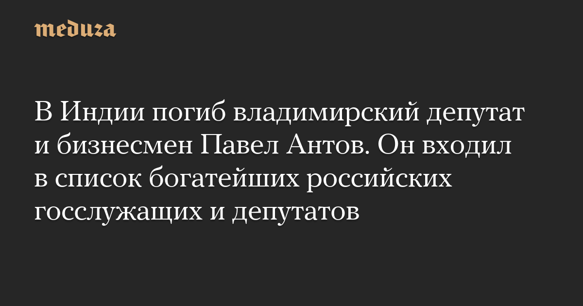 В Индии погиб владимирский депутат и бизнесмен Павел Антов. Он входил в список богатейших российских госслужащих и депутатов