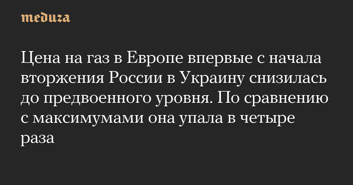 Цена на газ в Европе впервые с начала вторжения России в Украину снизилась до предвоенного уровня. По сравнению с максимумами она упала в четыре раза
