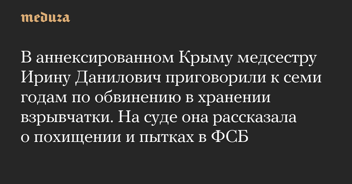 В аннексированном Крыму медсестру Ирину Данилович приговорили к семи годам по обвинению в хранении взрывчатки. На суде она рассказала о похищении и пытках в ФСБ