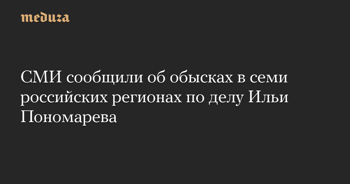 СМИ сообщили об обысках в семи российских регионах по делу Ильи Пономарева
