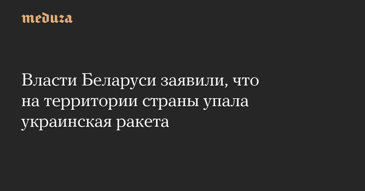 Власти Беларуси заявили, что на территории страны упала украинская ракета
