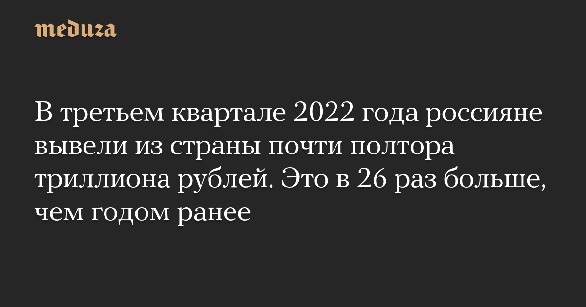 В третьем квартале 2022 года россияне вывели из страны почти полтора триллиона рублей. Это в 26 раз больше, чем годом ранее