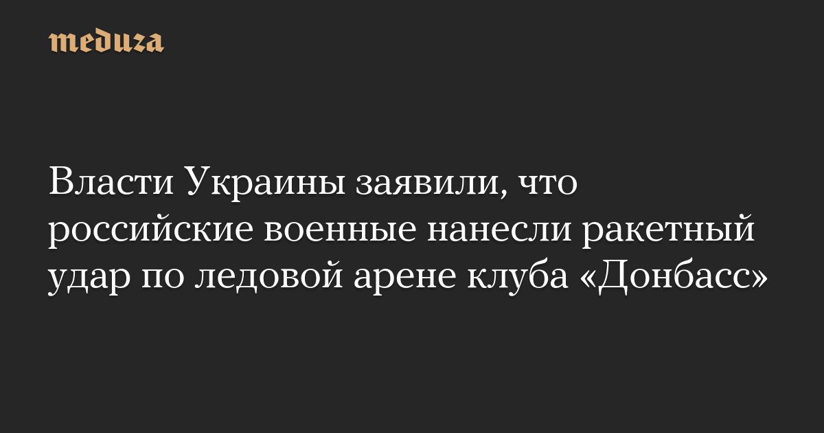 Власти Украины заявили, что российские военные нанесли ракетный удар по ледовой арене клуба «Донбасс»