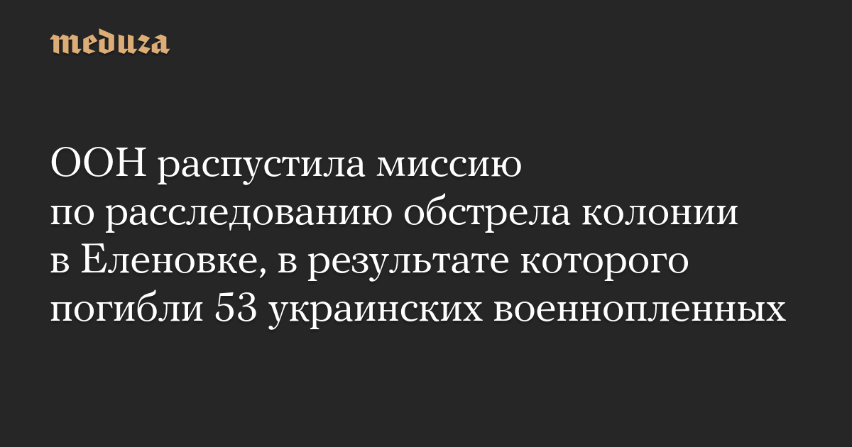 ООН распустила миссию по расследованию обстрела колонии в Еленовке, в результате которого погибли 53 украинских военнопленных