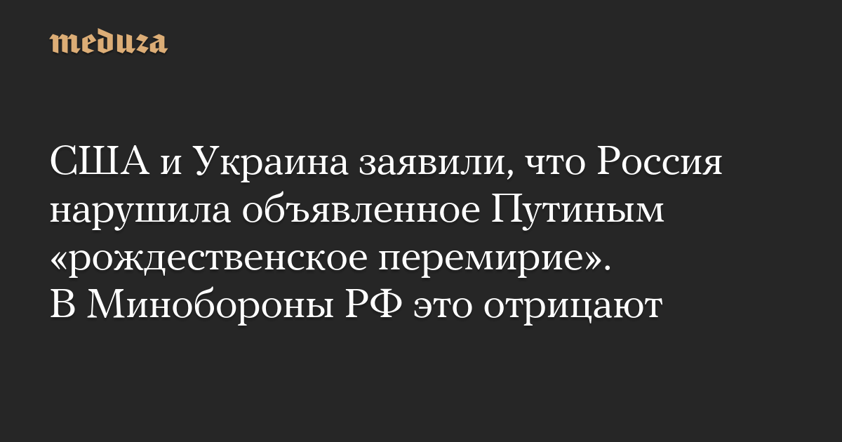 США и Украина заявили, что Россия нарушила объявленное Путиным «рождественское перемирие». В Минобороны РФ это отрицают