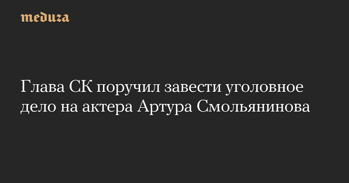 Председатель Следственного комитета РФ Александр Бастрыкин поручил возбудить уголовное дело в отношении актера Артура Смольянинова.