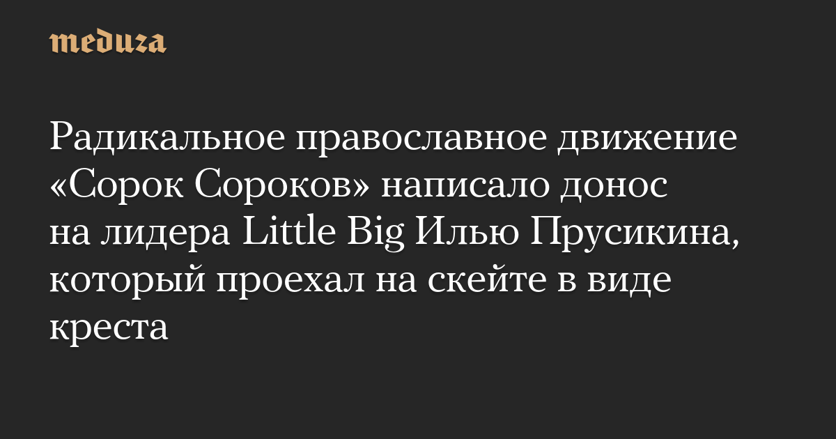 Радикальное православное движение «Сорок Сороков» написало донос на лидера Little Big Илью Прусикина, который проехал на скейте в виде креста