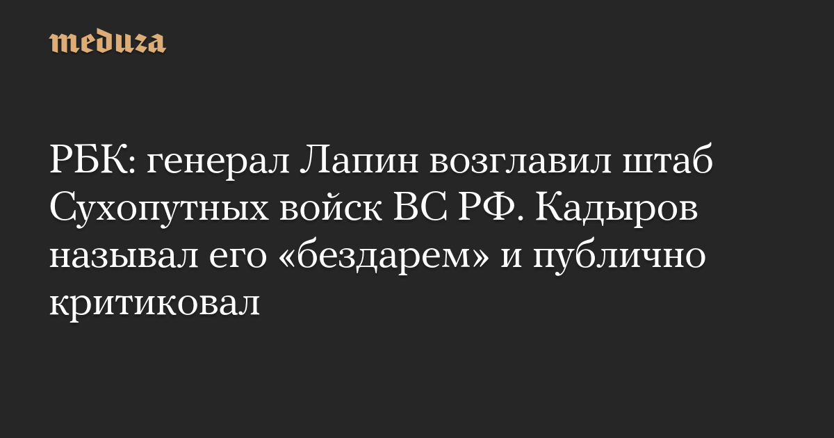 РБК: генерал Лапин возглавил штаб Сухопутных войск ВС РФ. Кадыров называл его «бездарем» и публично критиковал