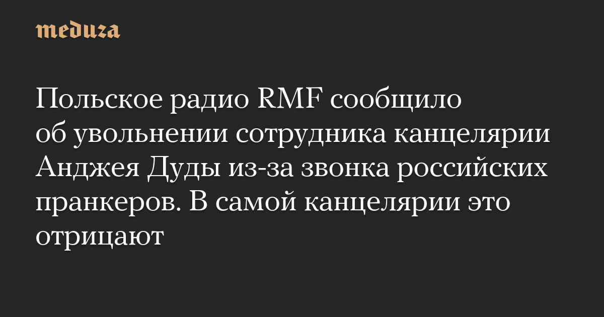 Польское радио RMF сообщило об увольнении сотрудника канцелярии Анджея Дуды из-за звонка российских пранкеров. В самой канцелярии это отрицают