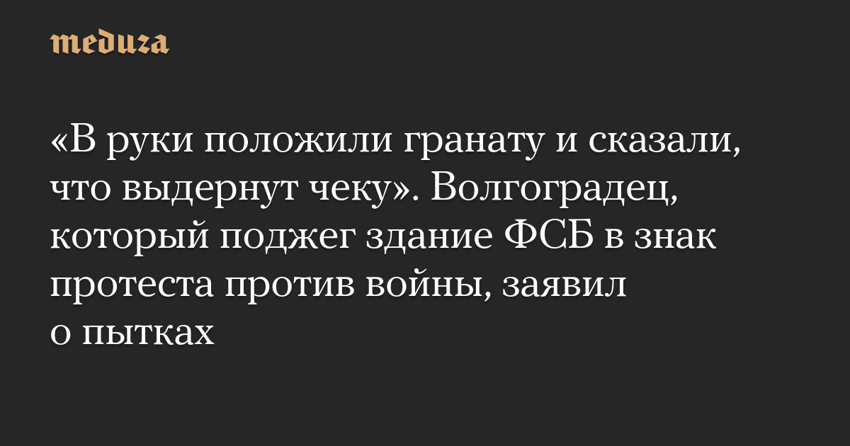 «В руки положили гранату и сказали, что выдернут чеку». Волгоградец, который поджег здание ФСБ в знак протеста против войны, заявил о пытках