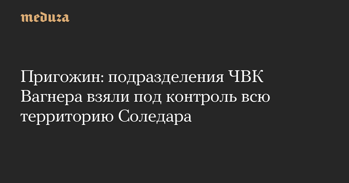 Пригожин: подразделения ЧВК Вагнера взяли под контроль всю территорию Соледара