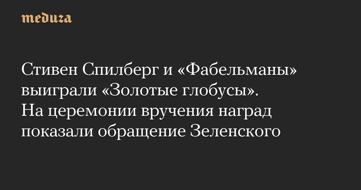 Стивен Спилберг и «Фабельманы» выиграли «Золотые глобусы». На церемонии вручения наград показали обращение Зеленского