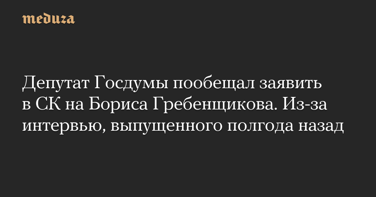 Депутат Госдумы пообещал заявить в СК на Бориса Гребенщикова. Из-за интервью, выпущенного полгода назад