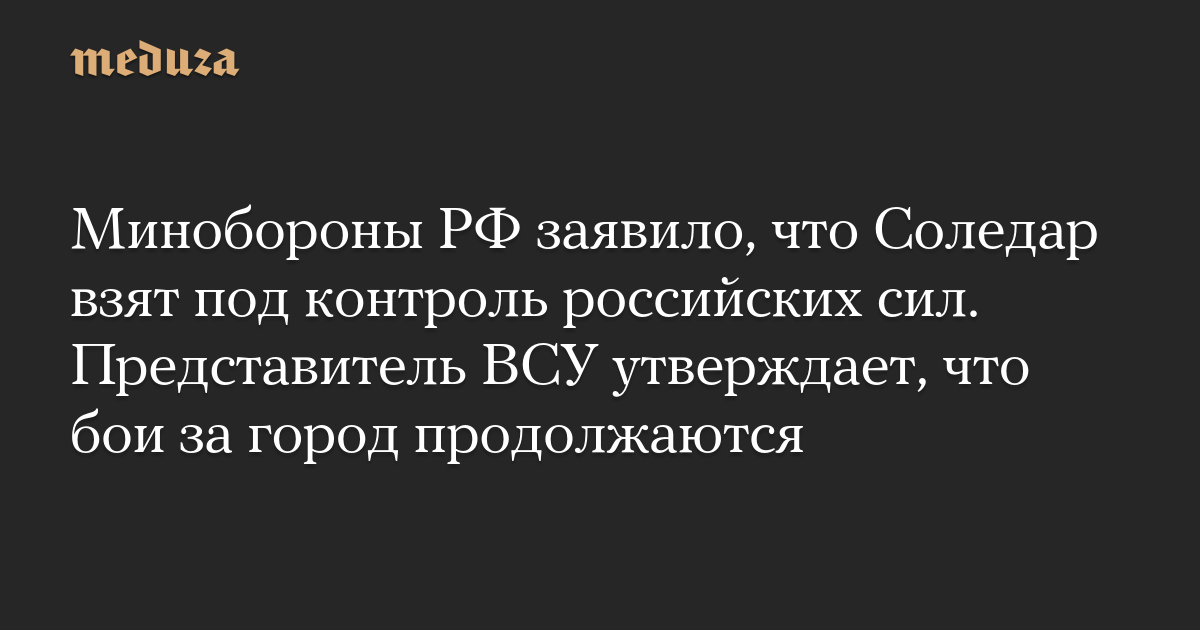 Минобороны РФ заявило, что Соледар взят под контроль российских сил. Представитель ВСУ утверждает, что бои за город продолжаются