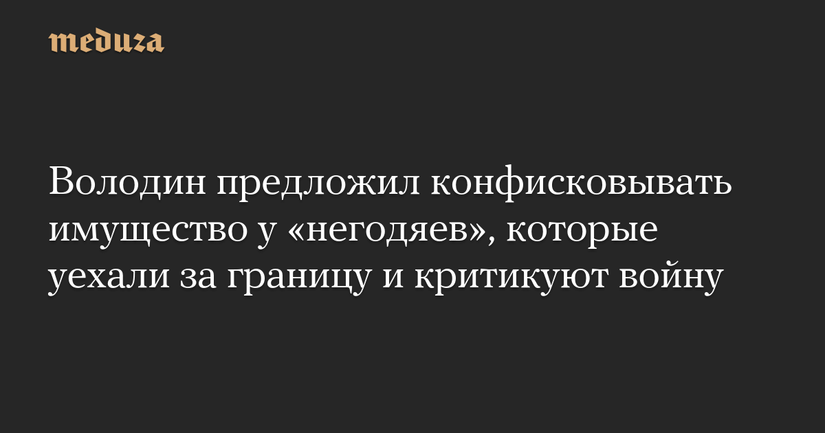 Володин предложил конфисковывать имущество у «негодяев», которые уехали за границу и критикуют войну